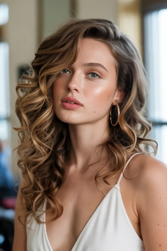 5. Loose Curly Layers with Side Part