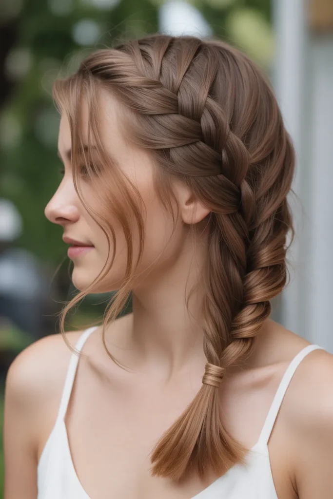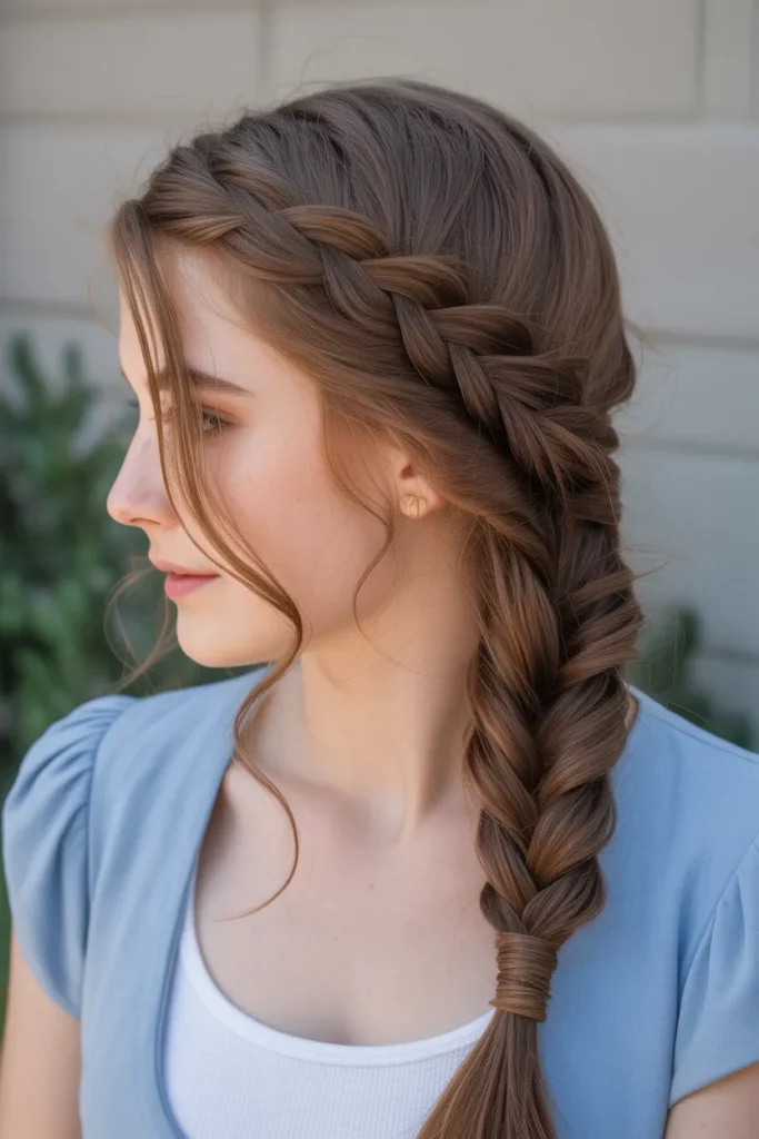 A side-swept fishtail braid instantly transforms a simple hairstyle into a visually striking statement. By shifting the braid over one shoulder, it draws attention to the face and upper body, creating balance and elegance. In my experience, this style is ideal for casual outings, brunches, or even semi-formal events because it feels effortless yet refined. It works on naturally straight, wavy, or slightly textured hair, adding a flattering dimension that makes hair appear thicker. The asymmetrical placement ensures the braid stands out while maintaining a graceful, understated look for everyday wear.
