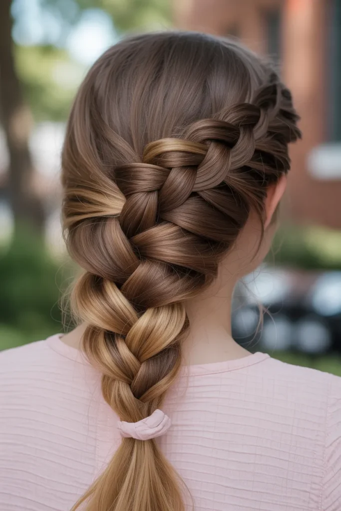 This braid is also highly versatile for personalization. I’ve noticed that adding small decorative clips or subtle hairpins along the twists enhances visual impact without overwhelming the hairstyle. It works well on medium-to-long hair and adapts to different textures, from straight to lightly wavy. This style is ideal for anyone wanting a braid that feels fresh, creative, and effortlessly stylish while remaining practical and visually captivating.