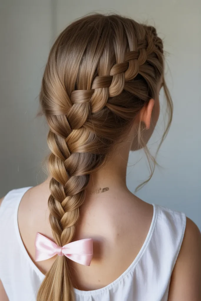 This hairstyle also allows for personalization. I’ve noticed that changing ribbon color according to outfit or occasion can instantly refresh the look. Using a thin, flexible ribbon ensures it stays secure without damaging hair. The combination of braid texture and ribbon detail creates depth and visual appeal, making this style ideal for anyone wanting a charming, creative hairstyle that’s both functional and Pinterest-worthy.