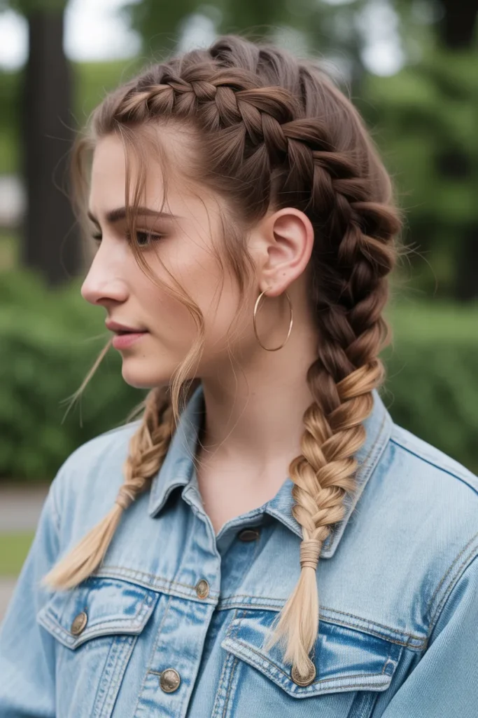 Double side fishtail braids offer a bold, creative approach to traditional braiding. In my experience, placing two parallel braids on one side adds asymmetry, texture, and visual interest, instantly transforming ordinary hair into a Pinterest-worthy look. This style works well for casual days, creative events, or festival-inspired outfits, giving hair volume and dimension. The braids draw attention without overwhelming the face, maintaining balance and approachability. Slightly loosening the braids enhances softness, while keeping the structure ensures they stay in place throughout the day.