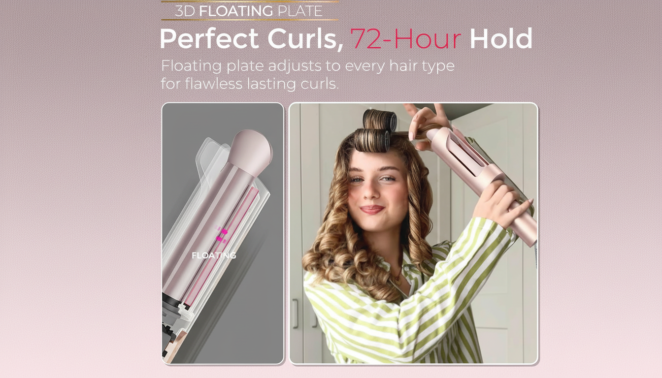 To style this look, large curling irons can create smooth waves, followed by gentle brushing for a soft finish. A light shine spray enhances the glamorous texture of the hair.
